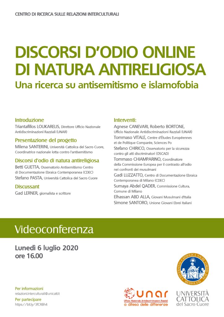 06|07 #videoconferenza “Discorsi d’odio online di natura antireligiosa”
