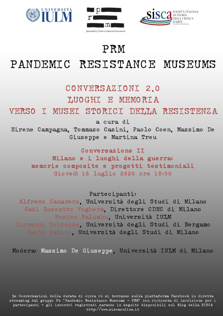 La Fondazione CDEC, attraverso la partecipazione del Direttore Gadi Luzzatto Voghera, è presente alla webconference “Conversazioni 2.0. Luoghi e memoria verso i musei storici della Resistenza”, organizzata da PRM – Pandemic Resistance Museum, con il Patrocinio del Rettorato IULM e della Presidenza della SISCA (Società italiana Storia della critica d’arte – Consulta Nazionale).