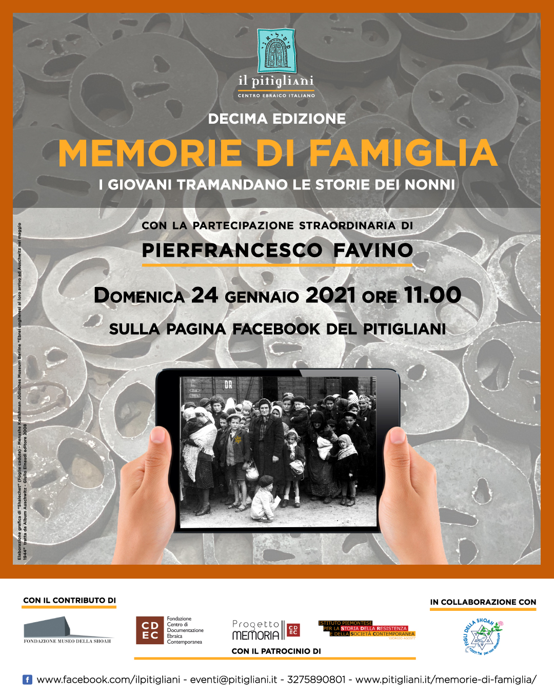 Il Pitigliani organizza la decima edizione dell’evento di perpetuazione della memoria. Con la partecipazione straordinaria di Pierfrancesco Favino.