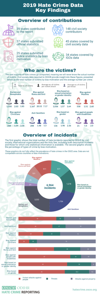In occasione della giornata internazionale della tolleranza, l’Office for Democratic Institutions and Human Rights (ODIHR) dell’OSCE ha pubblicato il report annuale sugli atti di hate crime nel 2019.