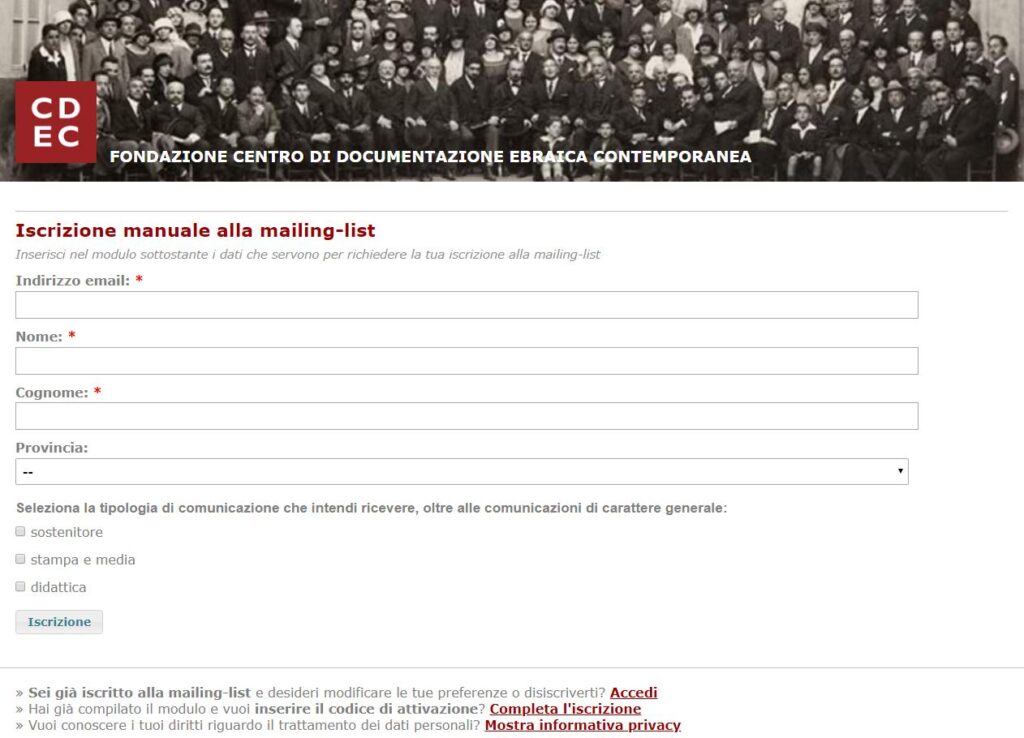 La Fondazione CDEC è particolarmente attenta alla trasparenza e alla protezione dei dati degli utenti. Per questo motivo raccogliamo il consenso all’utilizzo dei dati in una maniera attiva, assicurandoci che essere iscritto alla nostra mailing-list corrisponda alla volontà attuale di coloro che ci seguono.