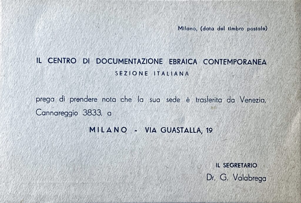 La nomina di Guido Valabrega e il trasferimento a Milano, in una sede annessa alla sinagoga centrale di Via Guastalla, rappresentano il passaggio a una nuova fase più istituzionale, in cui il CDEC assume la struttura di un vero e proprio archivio.
