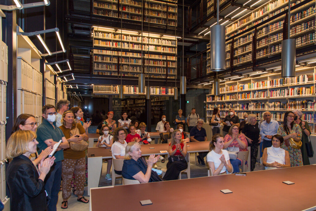 Bianca Ambrosio, Liliana Picciotto e Betti Guetta in biblioteca