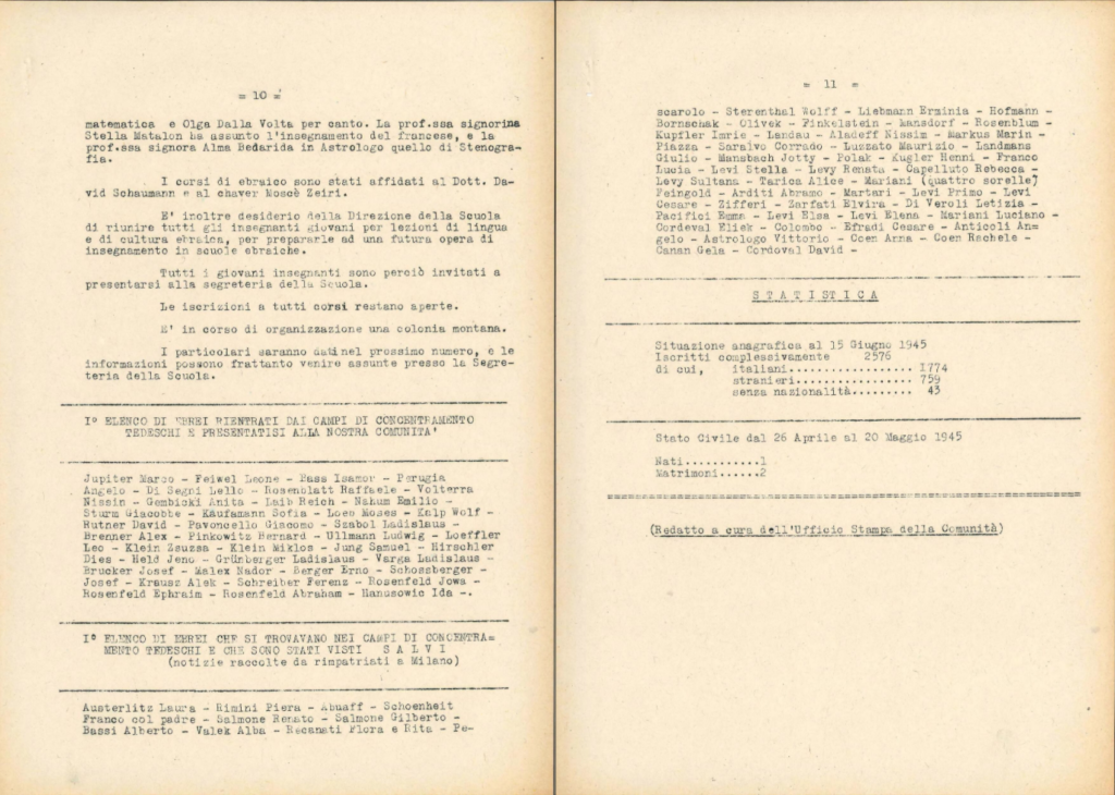 Oggi, il progressivo ritorno alla vita della Comunità di quei primi anni dopo la guerra, dopo la Liberazione, si può “rivivere” attraverso le pagine proprio del Bollettino del 1945, del 1946 fino a tutto il 1952, che il CDEC mette a disposizione attraverso la sua Digital Library.