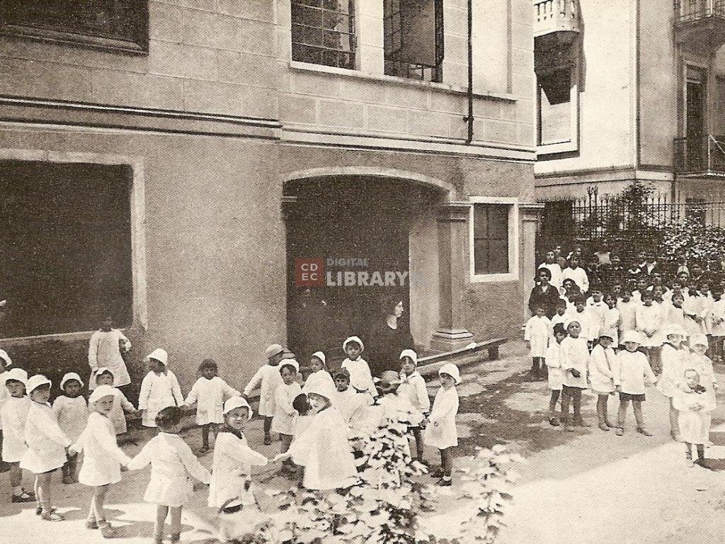 Gli alunni dell’Asilo infantile dell’Istituto israelitico durante la ricreazione in cortile, 1930